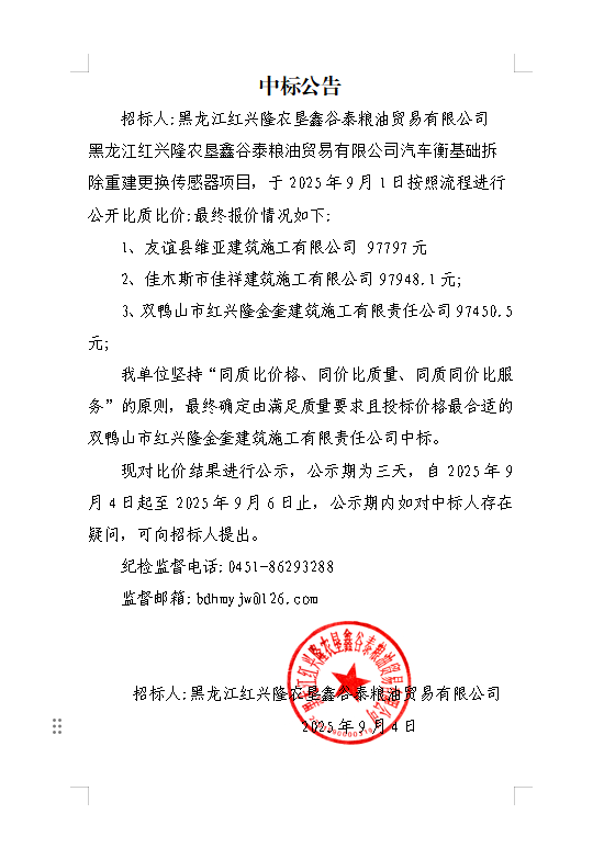 鑫谷泰汽車衡基礎拆除重建更換傳感器項目中標公告